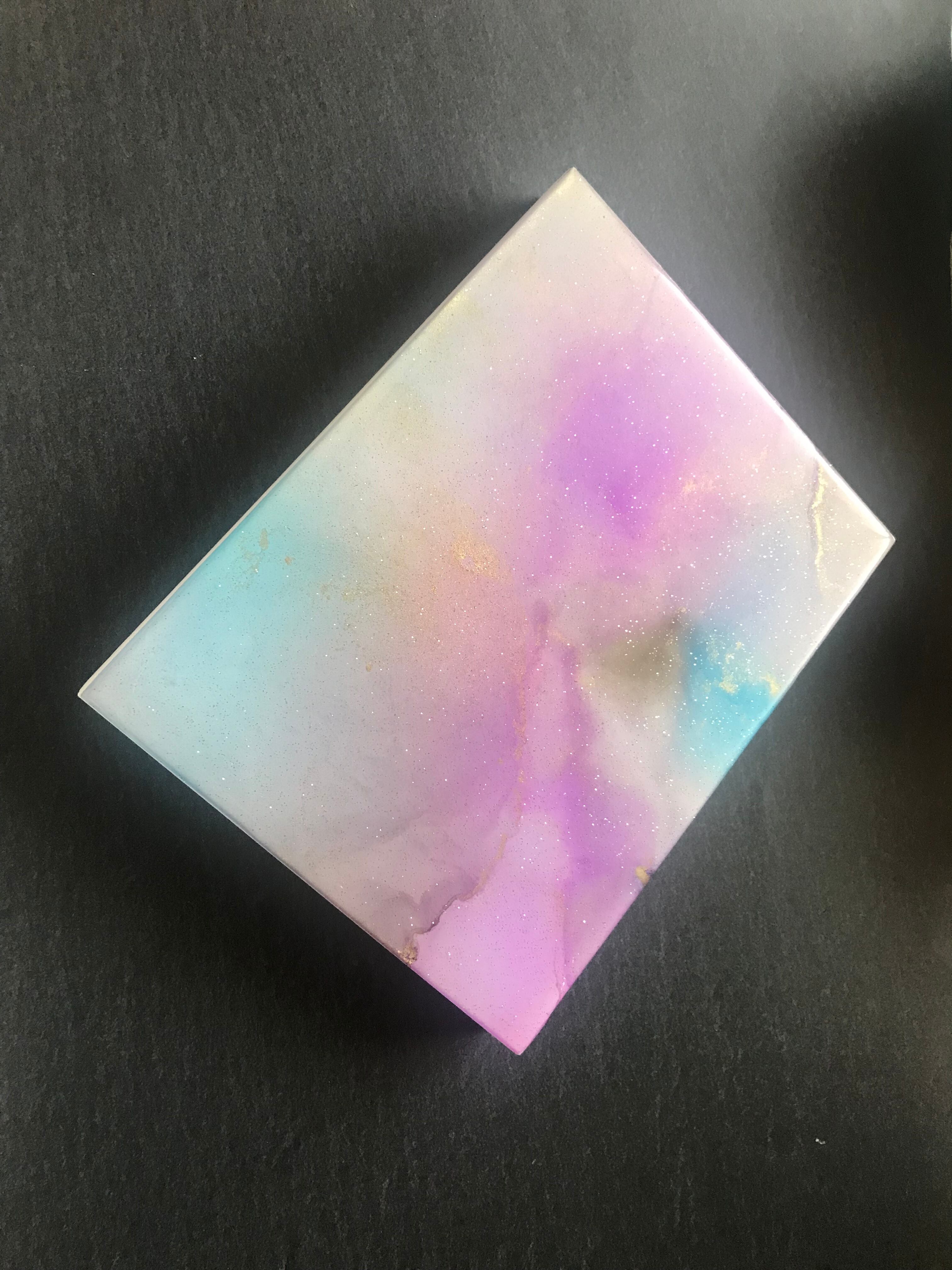 こちらはアルコールインクアートをレジンコーティングしたアートパネルになります。